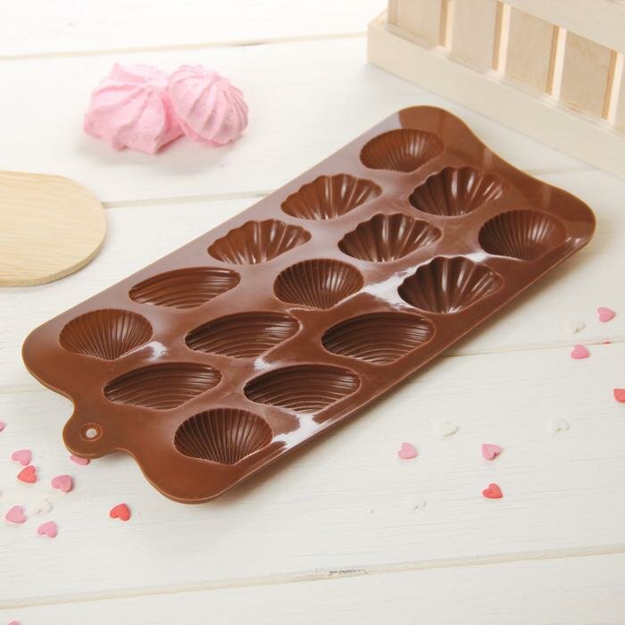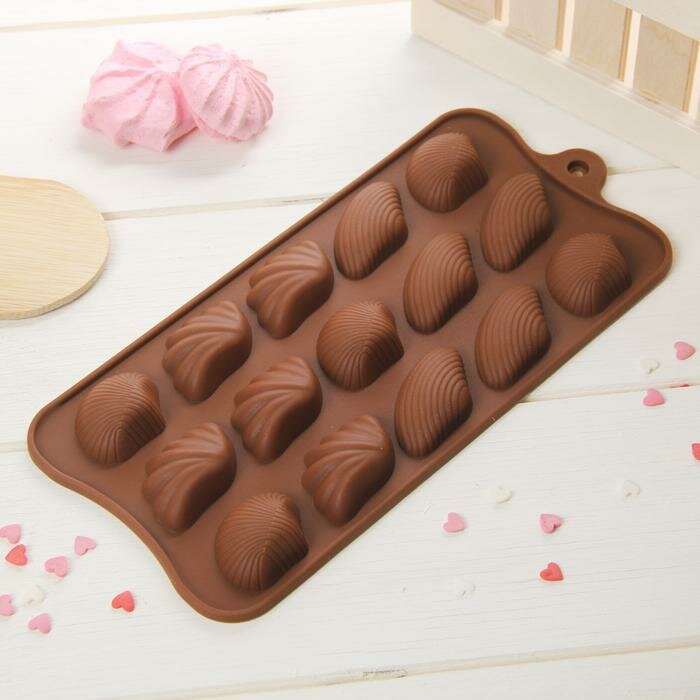 Форма для шоколада Доляна Ракушки, 15 ячеек, шоколадный