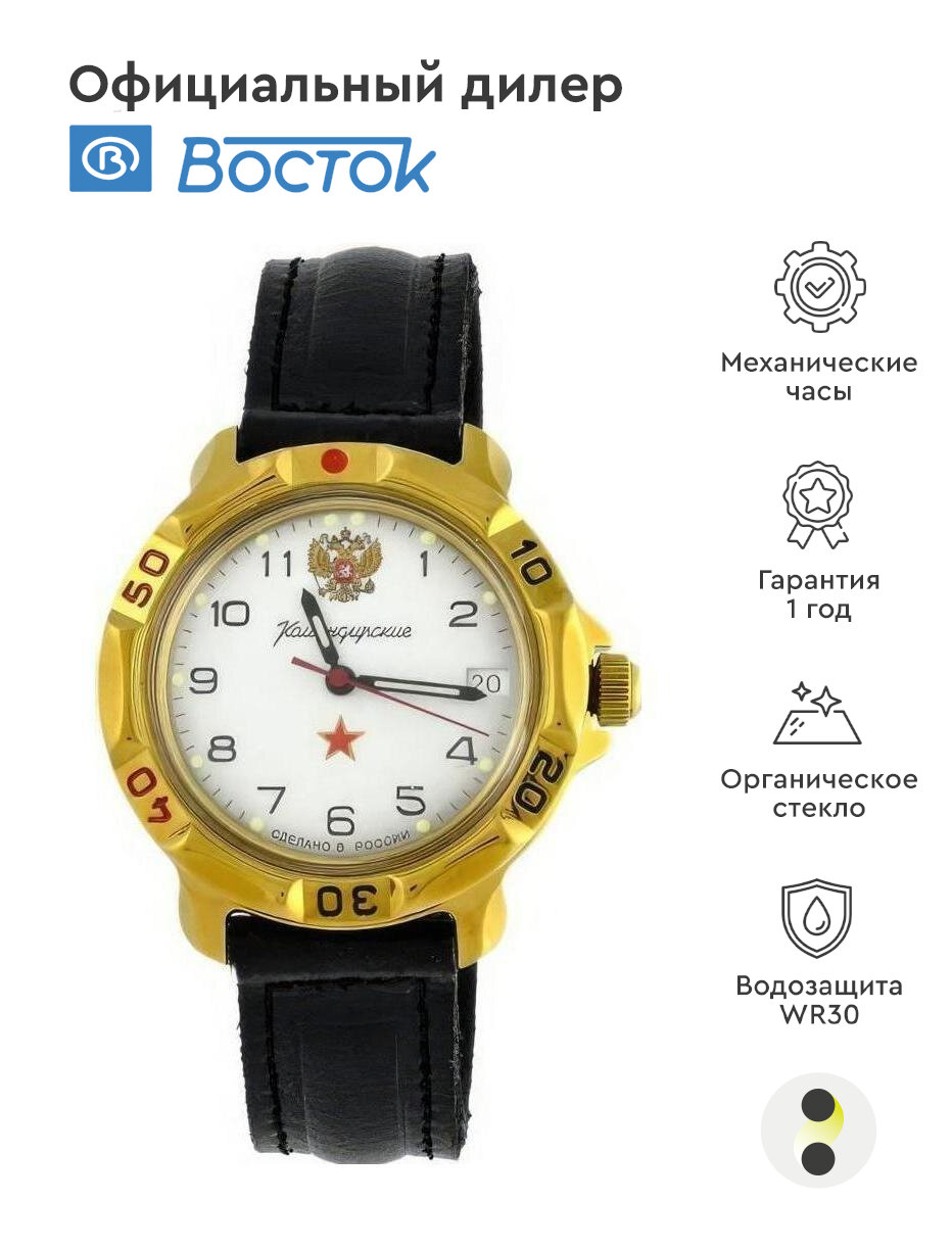 Мужские наручные часы Восток Командирские 819322-classic, натуральная кожа, черный