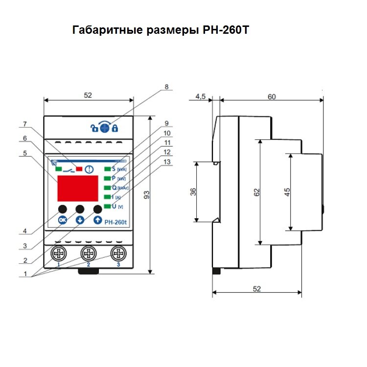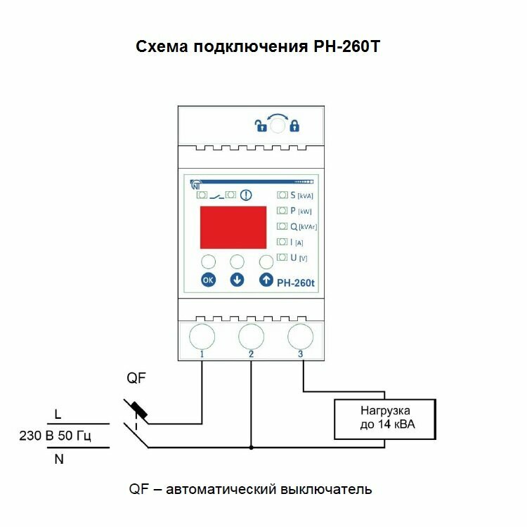 Реле контроля однофазное напряжения РН-260Т 63А на DIN-рейку 3425600260т Новатек-Электро