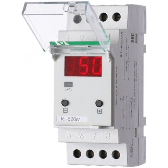 Регулятор температуры RT-820M от -30 до +140 град.C; 16А 24-264В DC/30-264В AC 1Z IP20 микропроцессорный; многофункц.; цифровая индикация; выносной датчик с термоус. проводом; монтаж на DIN-рейке 35мм F&F EA07.001.007 ( 1шт. )