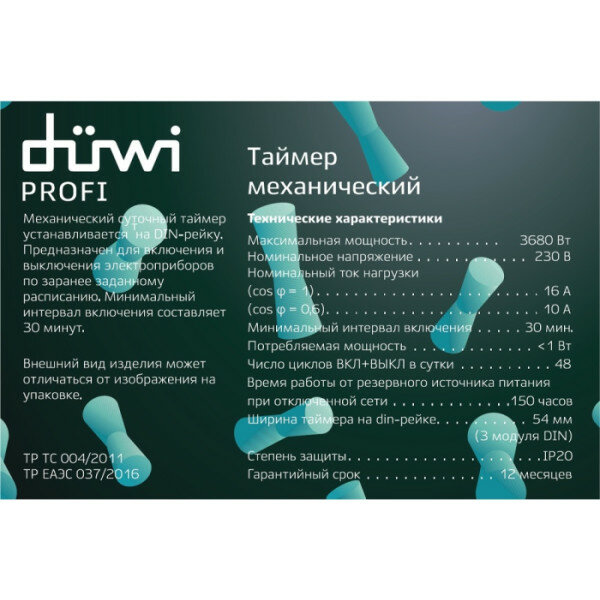 Таймер механический, суточный на DIN-рейку, 30мин, 16А/3680Вт duwi 25805 6 интересное: