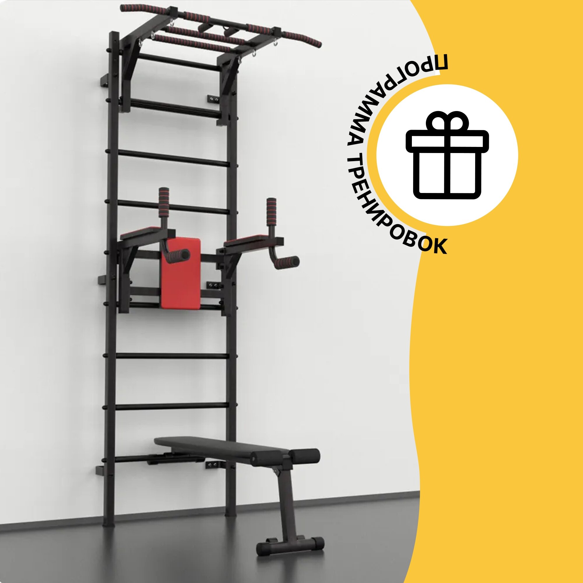 Шведская стенка с турником и брусьями. Спортивный комплекс со скамьей Богатырь 3в1