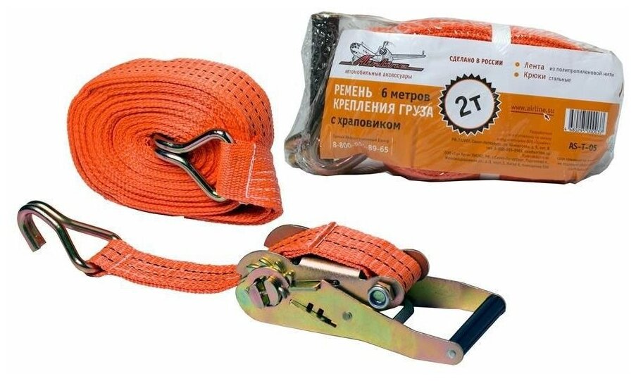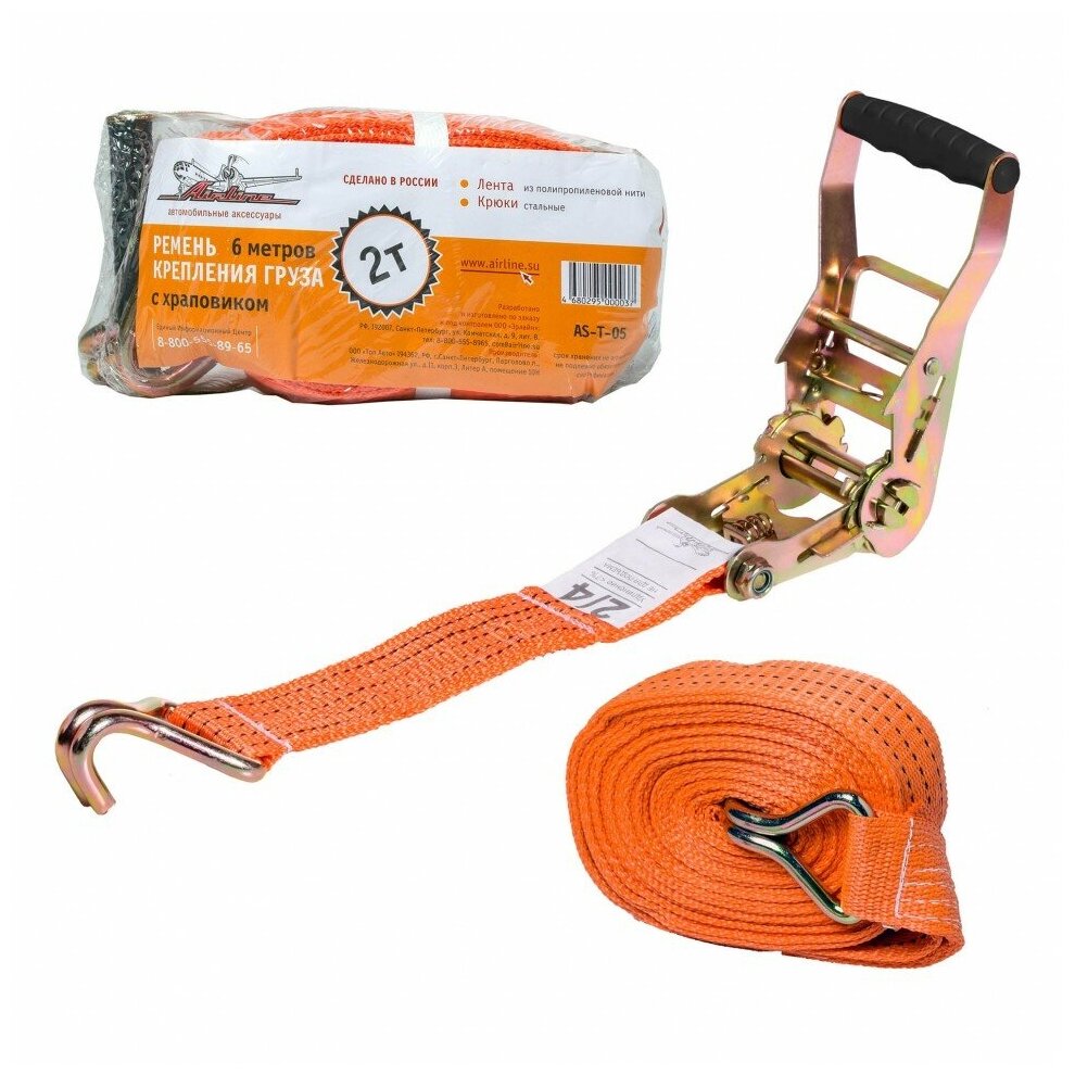 AIRLINE Стяжка крепления груза (крюк) 6м х 50мм 2т "AIRLINE" (AS-T-05)