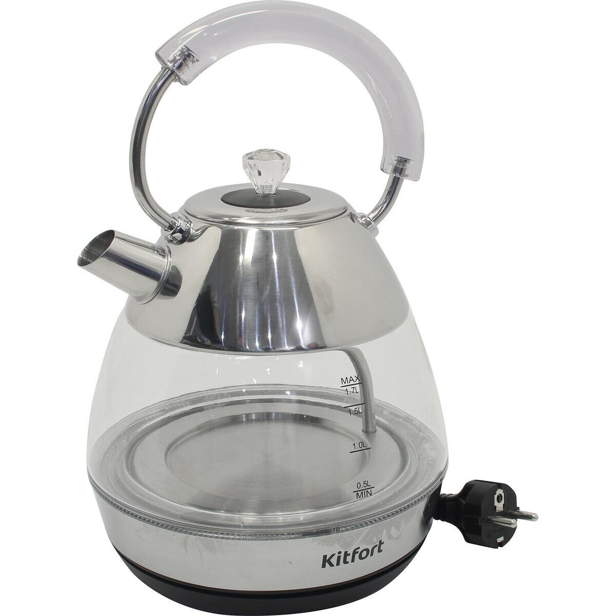 Электрический чайник Kitfort KT-678, 2200 Вт, серебристый/прозрачный