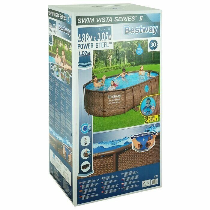 Бассейн каркасный овальный Power Steel Swim Vista Series II, 488х305х107см + песочный фильтр-насос + аксессуары, BestWay, 56946bw
