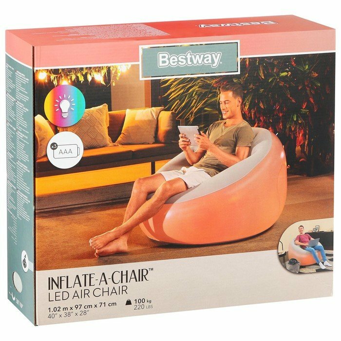 Надувное кресло Bestway 75086 Inflate-A-Chair, с Led подсветкой на батарейках (3хААА), 97х102x71см / Пуфик надувной, надувное сидение