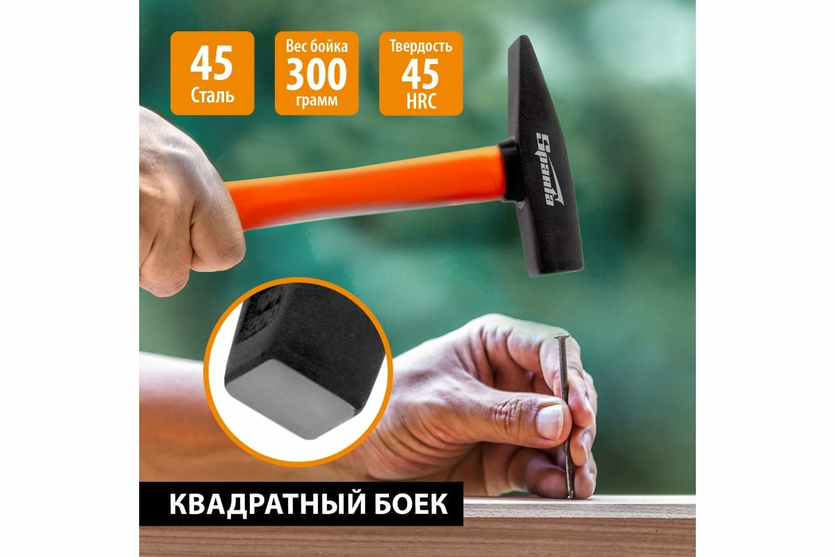 Молоток слесарный Sparta 300 г, фибергласовая обрезиненная рукоятка 10373