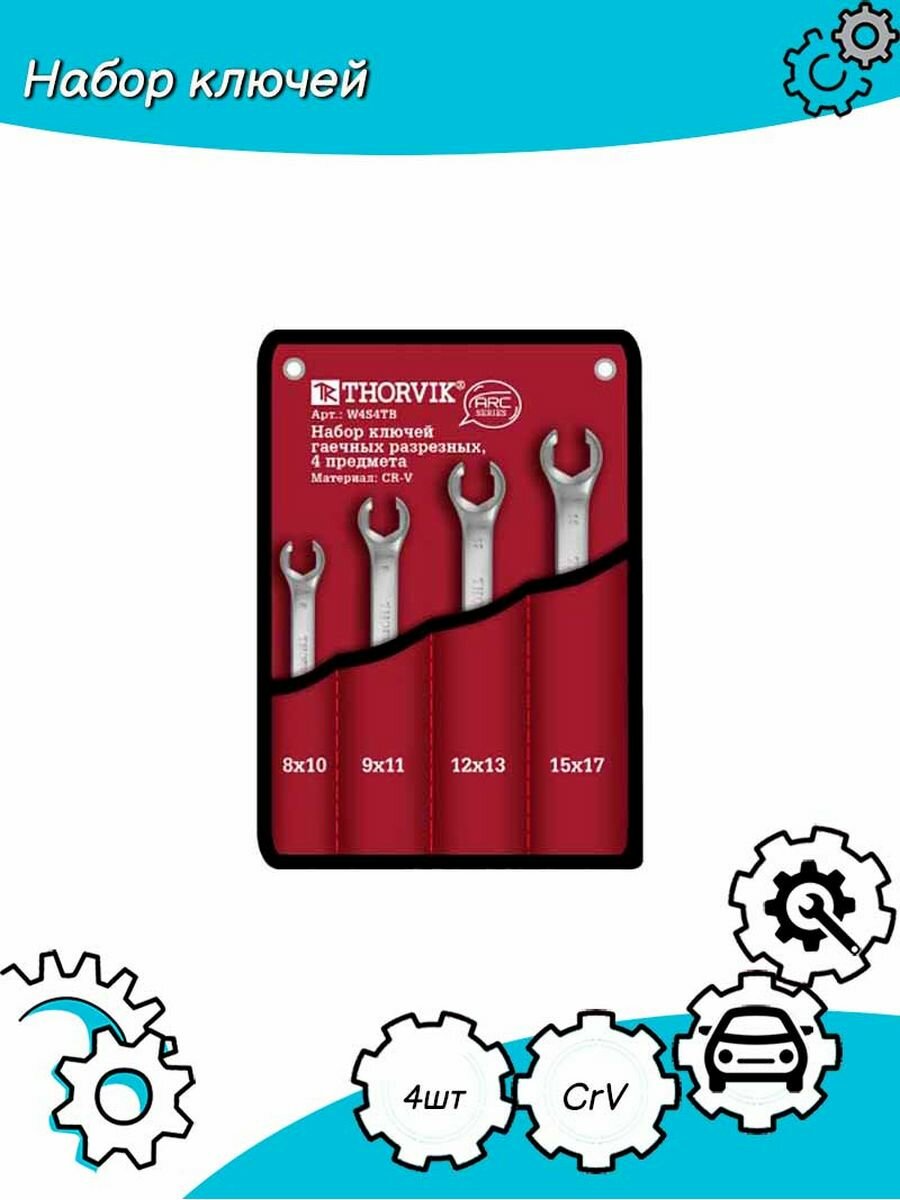 Набор Ключей 4 Пр: Разрезных Серии Arc: 8х10, 9х11,12х13, 15х17 Мм, В Сумке THORVIK арт. W4S4TB
