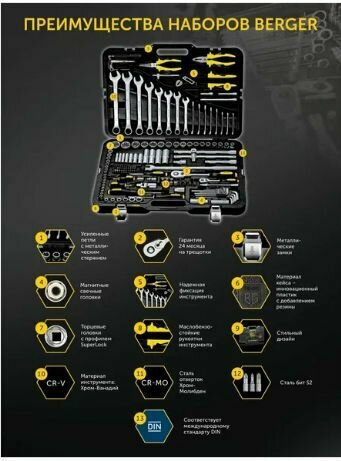 Набор инструментов ганновер, 163 предмета, Berger BG163-121438