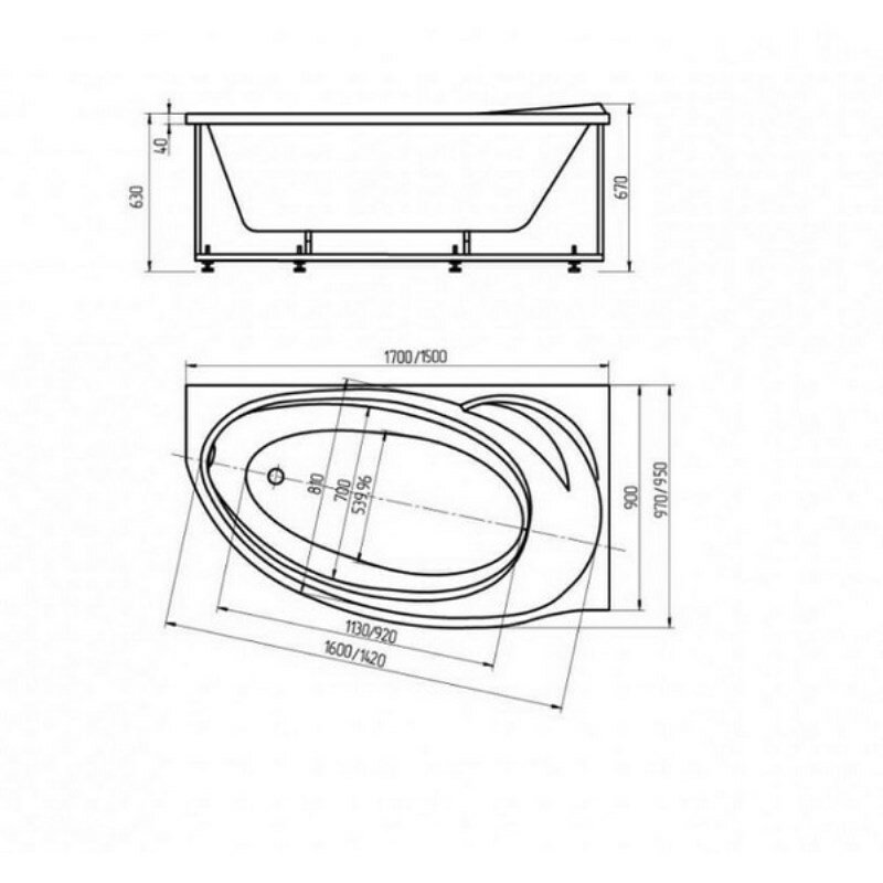 Акриловая ванна Aquatek Бетта 150x95 L BET150-0000067 без гидромассажа с фронтальной панелью с каркасом (разборный) со слив-переливом