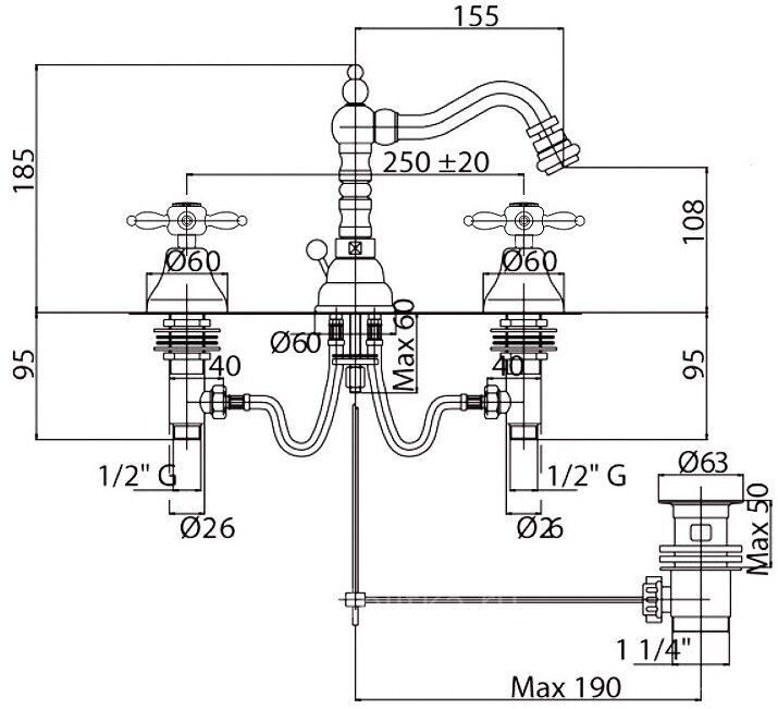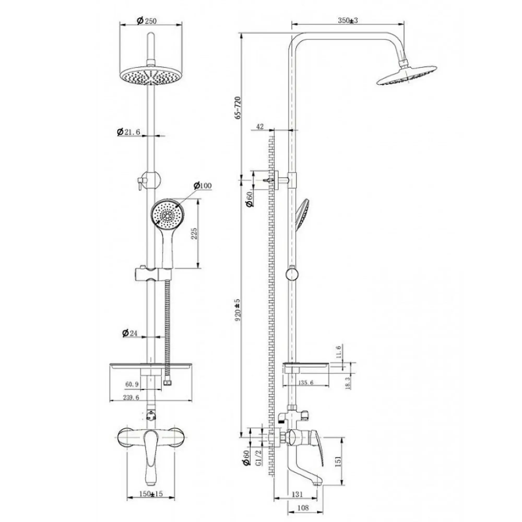 | Диаметр верхнего душа | 250 мм |