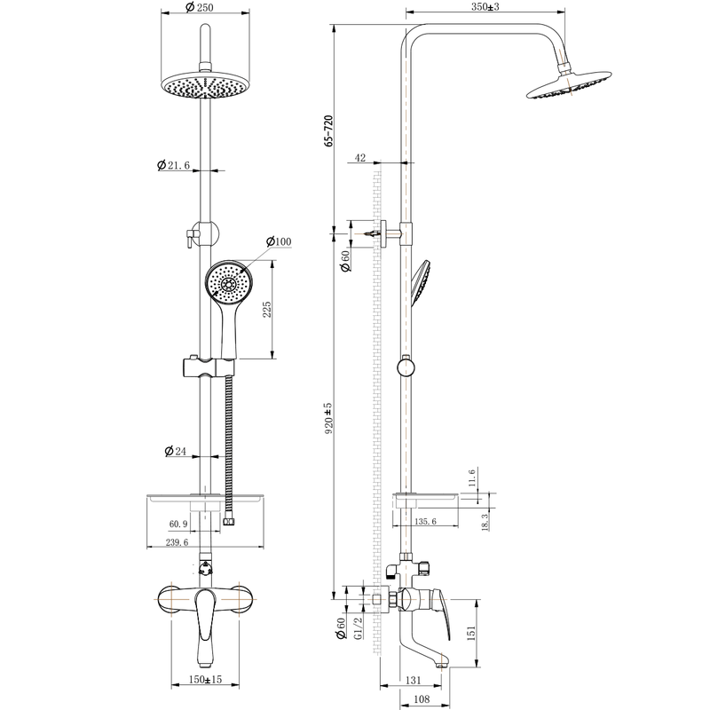 Душевая стойка Lemark Linara LM0462C для ванны и душа с регулируемой высотой штанги