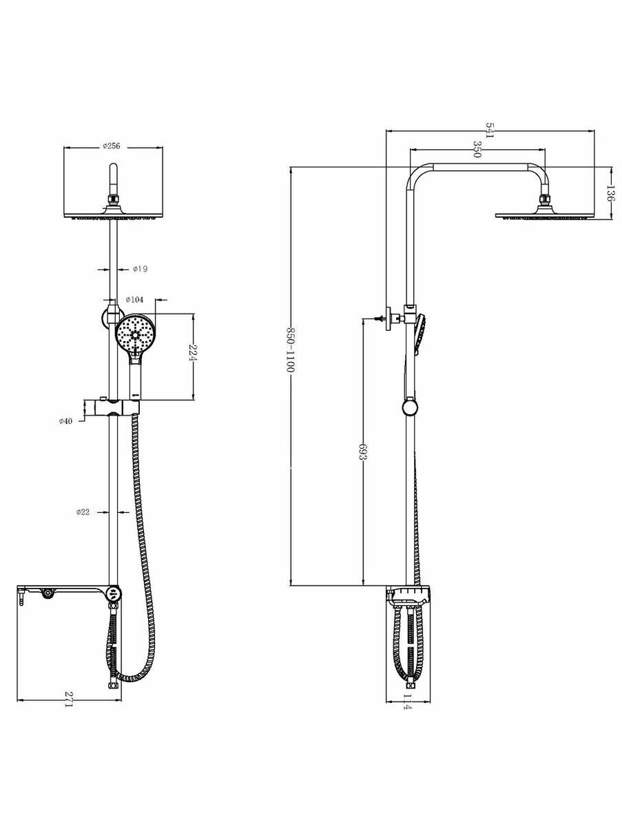 Lemark Душевой гарнитур с регулируемой высотой штанги и верхней душевой лейкой Lm8810c .