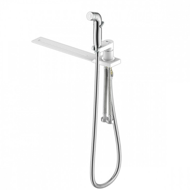 Смеситель Lemark Solo LM7170CW с гигиеническим душем, устанавливаемый на унитаз, хром/белый