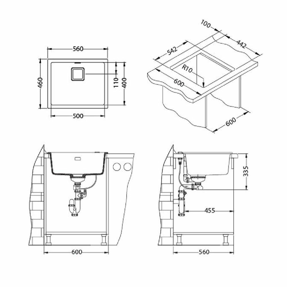 Мойка ALVEUS GRANITAL+ QUADRIX 50 STEEL-G04M 560X460X200 в комплекте с сифоном