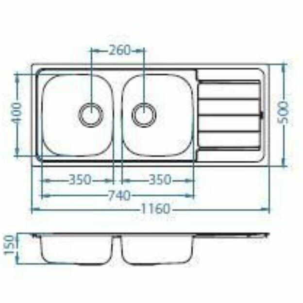 Кухонная мойка ALVEUS LINE 100 NAT-90 1160X500 2X нерж.сталь (1087978)