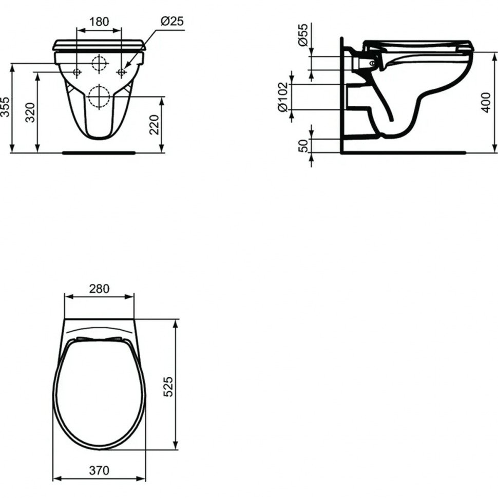 Чаша унитаза подвесная Ideal STANDARD Eurovit K881201 с горизонтальным выпуском