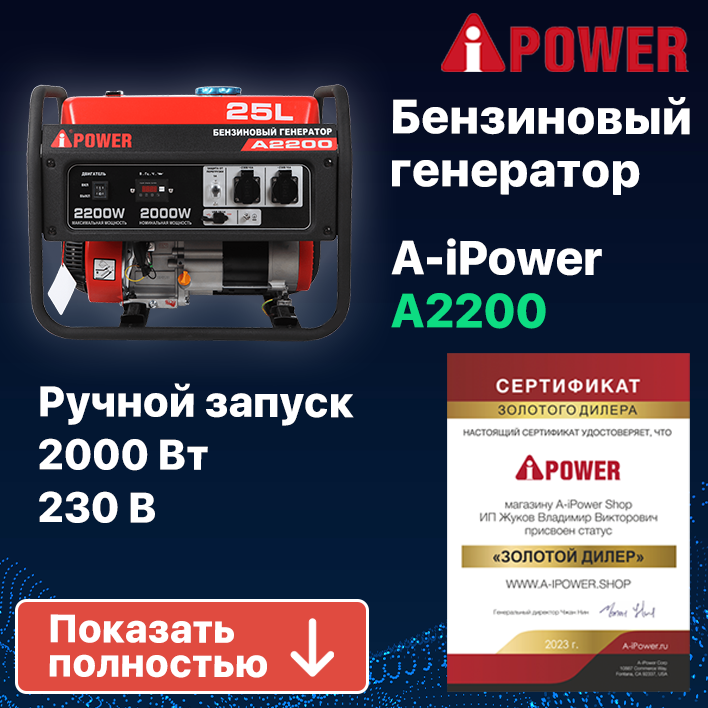 Бензиновый генератор A-iPower A2200, (2200 Вт)