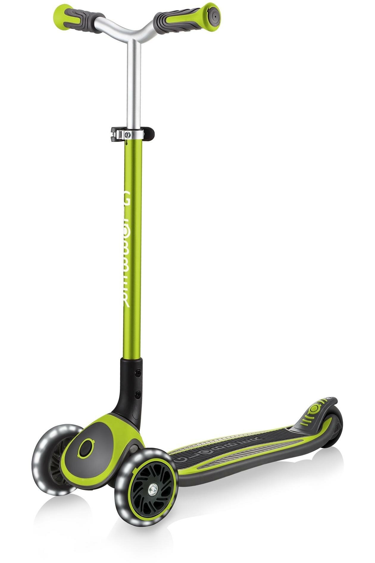 Детский 3-колесный самокат городской самокат GLOBBER Master Lights, светло-зеленый