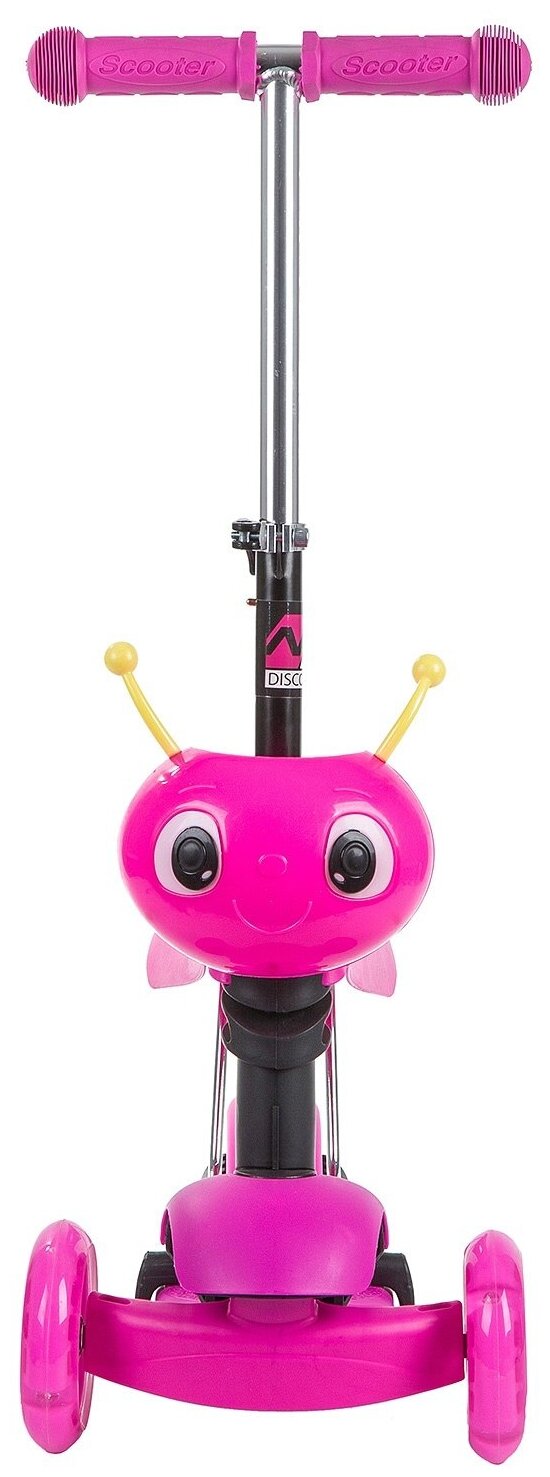 Самокат-кикборд Novatrack Disco-kids Saddle (2019) (Самокат Novatrack Disco-kids Saddle для детей, трансформер, свет.колеса PU 120*90мм, розовый)
