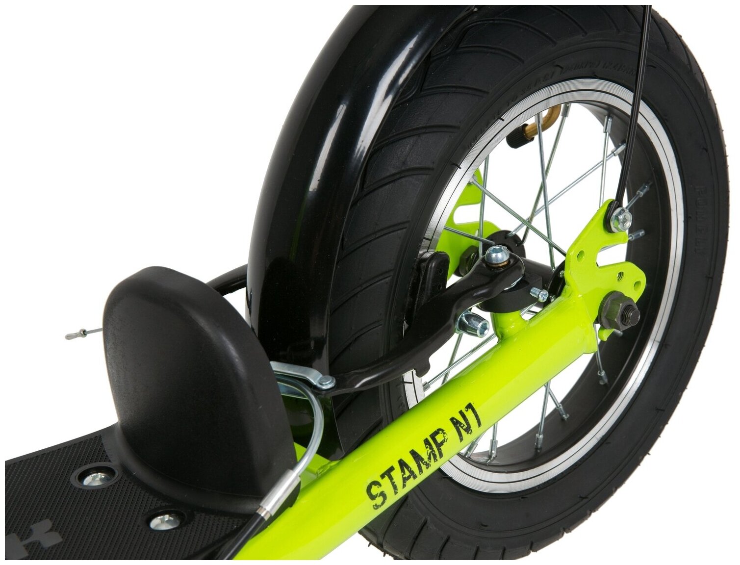 Самокат NOVATRACK 16"/12" CITY LINE (Надув. колеса) 2 тормоза V-brake неоновый/зеленый LM20