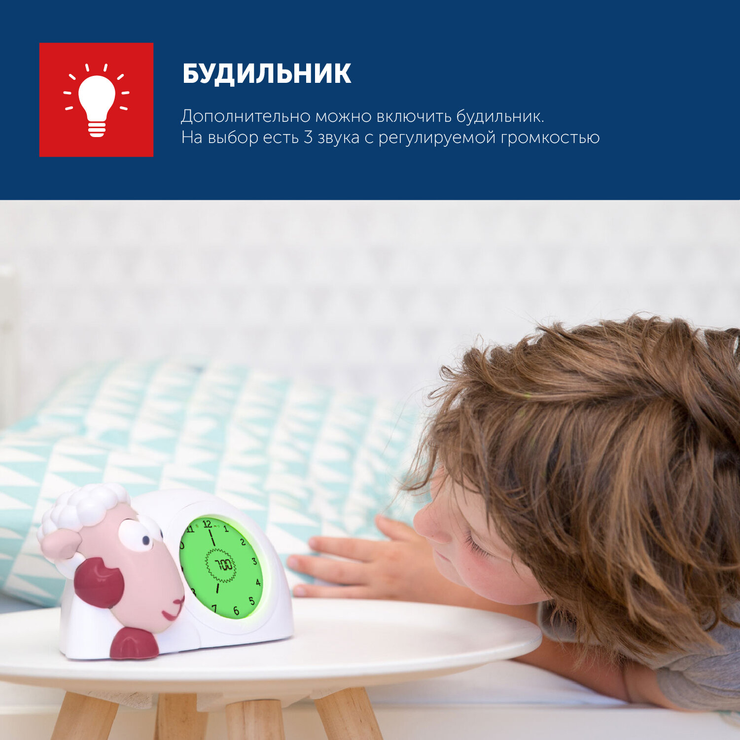 Часы будильник детский ночник ZAZU Ягненок Сэм