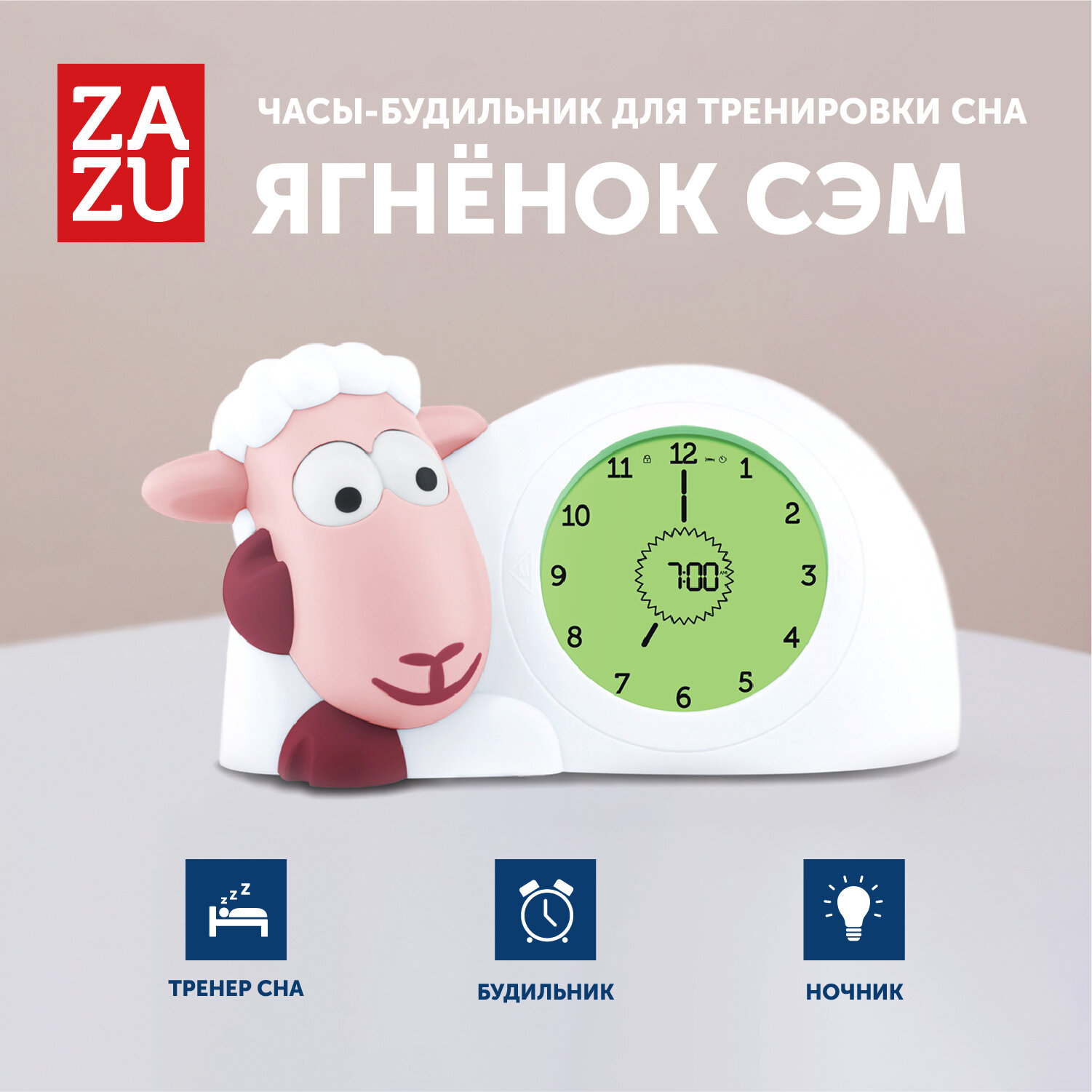 Часы-будильник для тренировки сна Ягнёнок Сэм (SAM) ZAZU. Розовый. 2+. Арт. ZA-SAM-03 интересное: