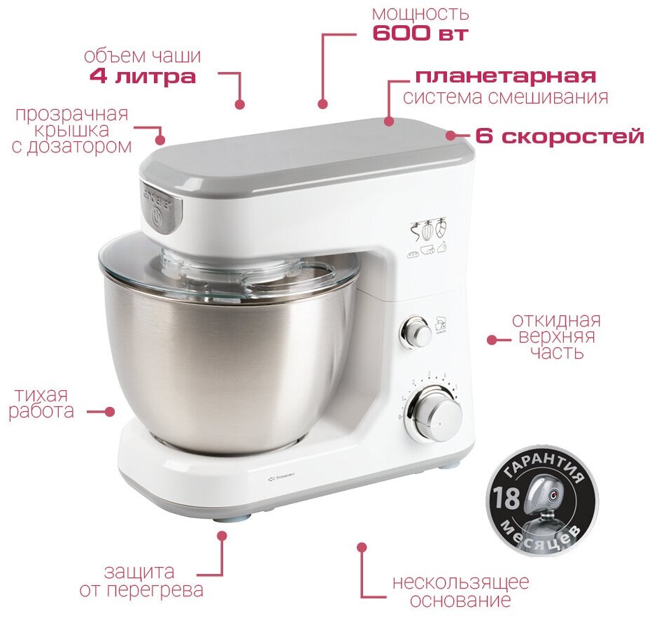 Планетарный миксер Endever Sigma-21S/600 Вт / 4л