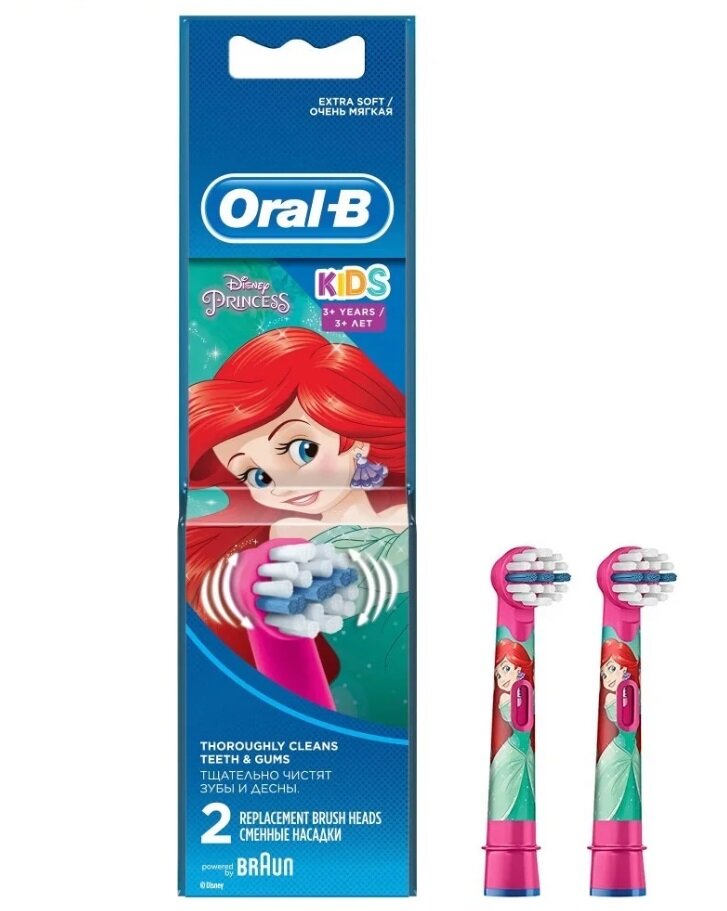 Подходят ко всем электрическим щеткам Oral-B, в комплекте идут сразу две насадки, разработана специально для детского рта, не повреждает десна, хорошо очищает, разные варианты дизайна.