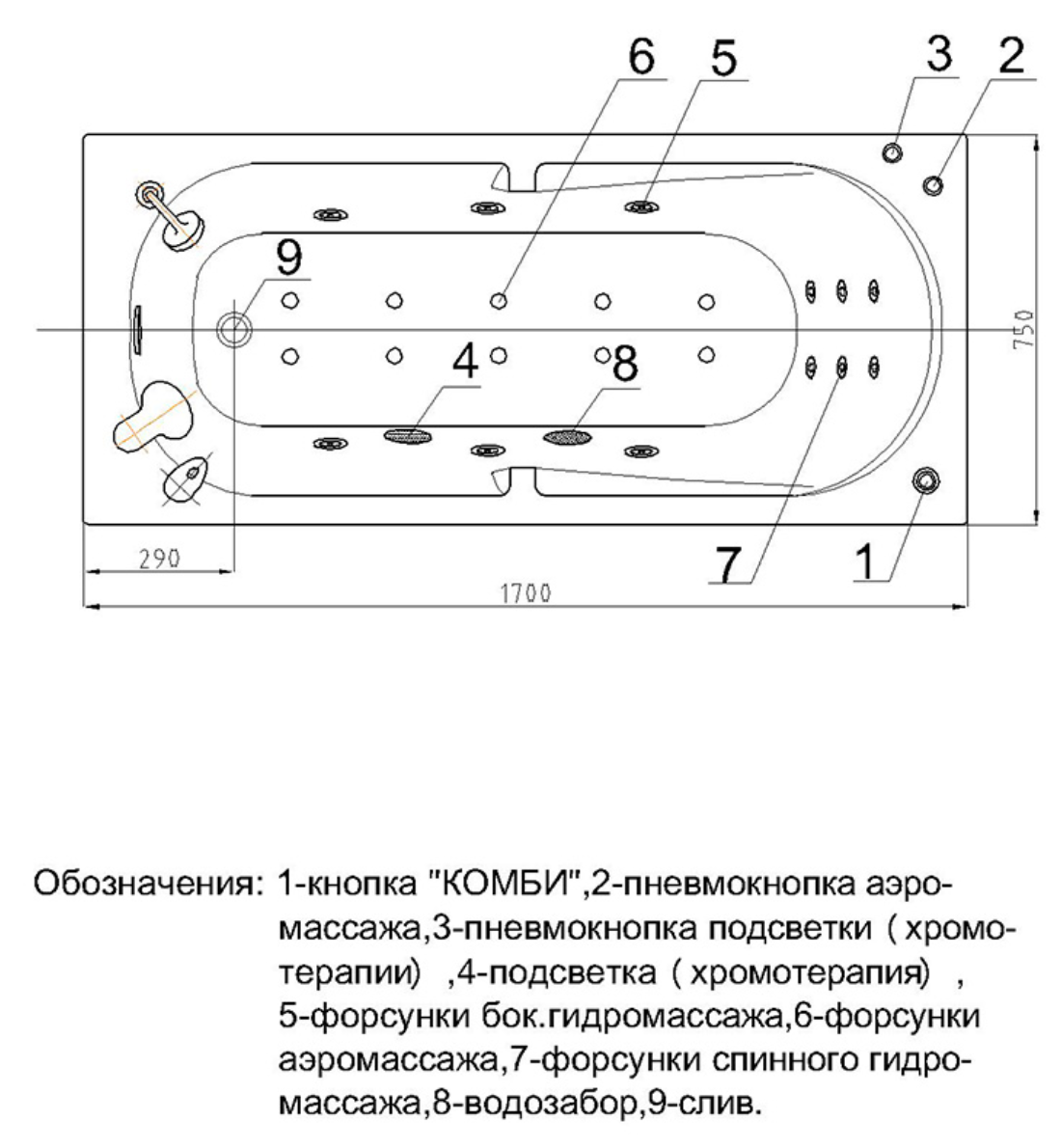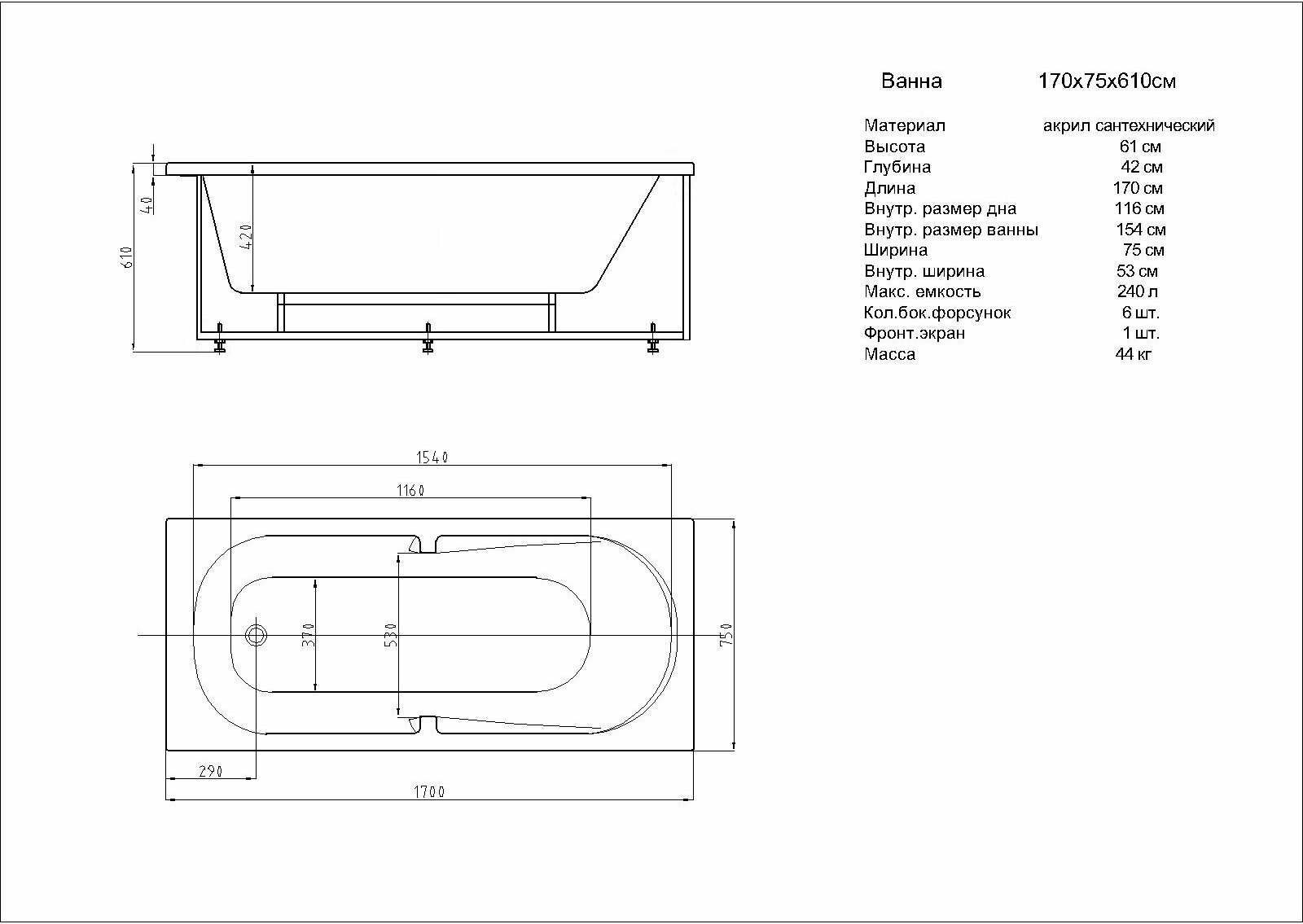 | Подробная комплектация | ванна, каркас, система слива/перелива, фронтальная панель, подлокотники - 2шт. |