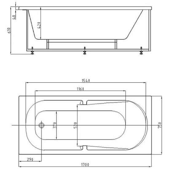 Ванна Акриловая АКВАТЕК Лея 170x75 LEY170-0000021