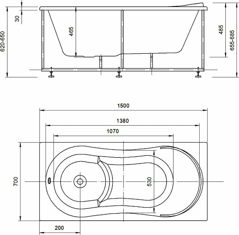 | Подробная комплектация | ванна, каркас, система слива/перелива |