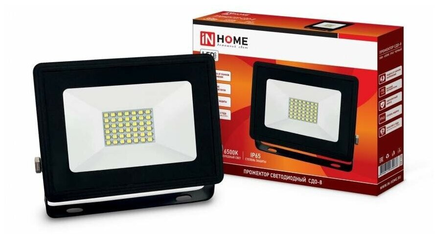 Прожектор светодиод СДО-8 20Вт 6500К 1900Лм черный IP65 IN HOME (1/40)
