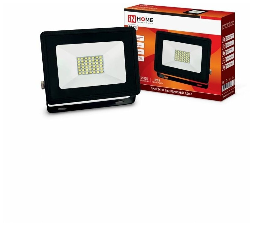 INhome Прожектор светодиодный IN HOME СДО-8, 20 Вт, 230 В, 1900 Лм, 6500 К, IP65, холодный белый
