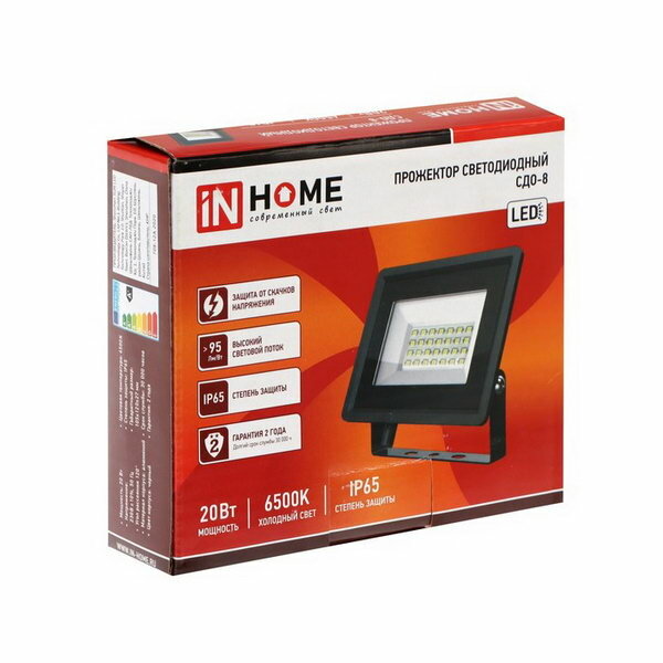 Прожектор светодиод СДО-8 20Вт 6500К 1900Лм черный IP65 IN HOME (1/40)