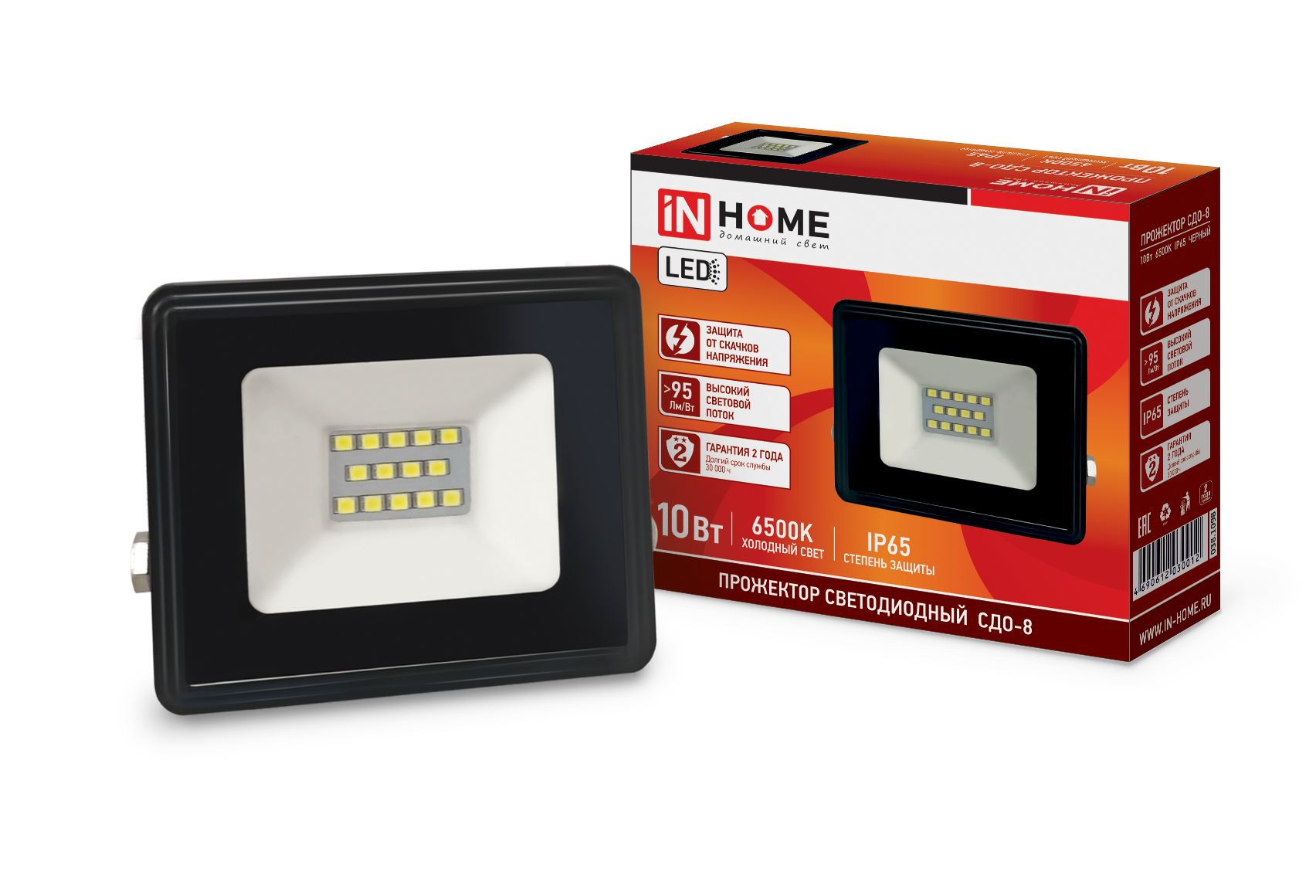 Прожектор светодиодный IN HOME СДО-8, 20 Вт, 230 В, 1900 Лм, 6500 К, IP65, холодный белый