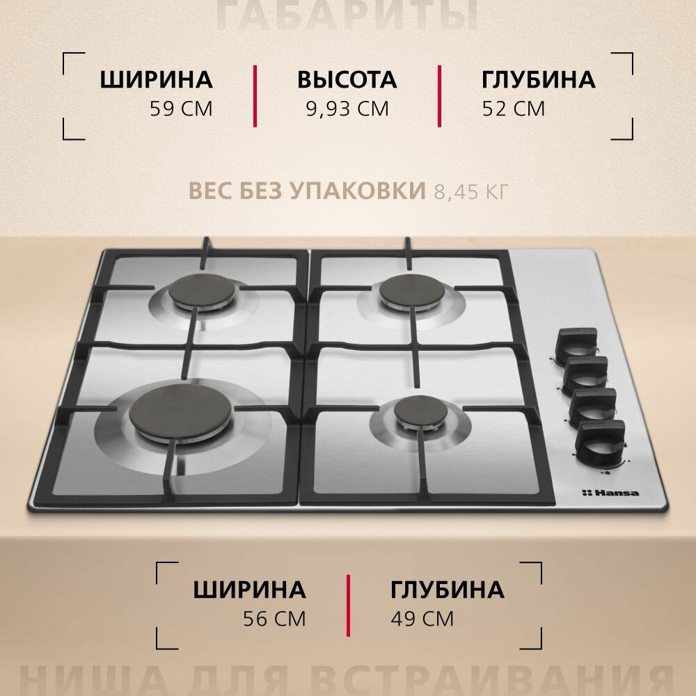 Газовая варочная панель Hansa BHGI620530, независимая, нержавеющая сталь