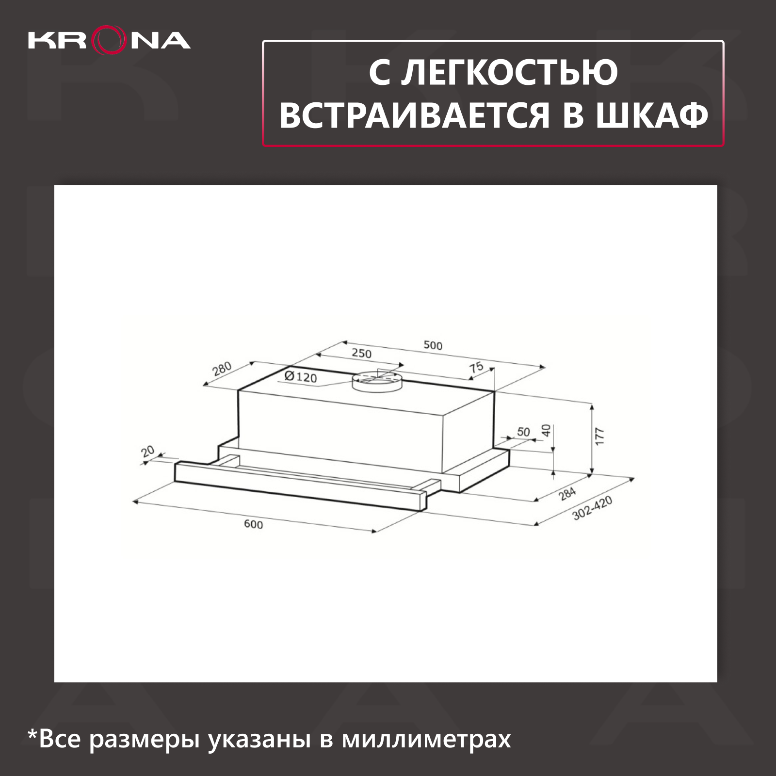 Кухонная вытяжка встраиваемая KRONA KERRY 600 INOX PB