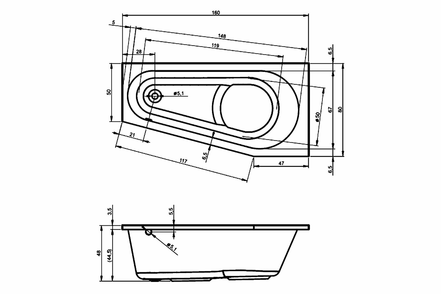 Акриловая ванна Riho Delta 150x80 без гидромассажа правая B066001005