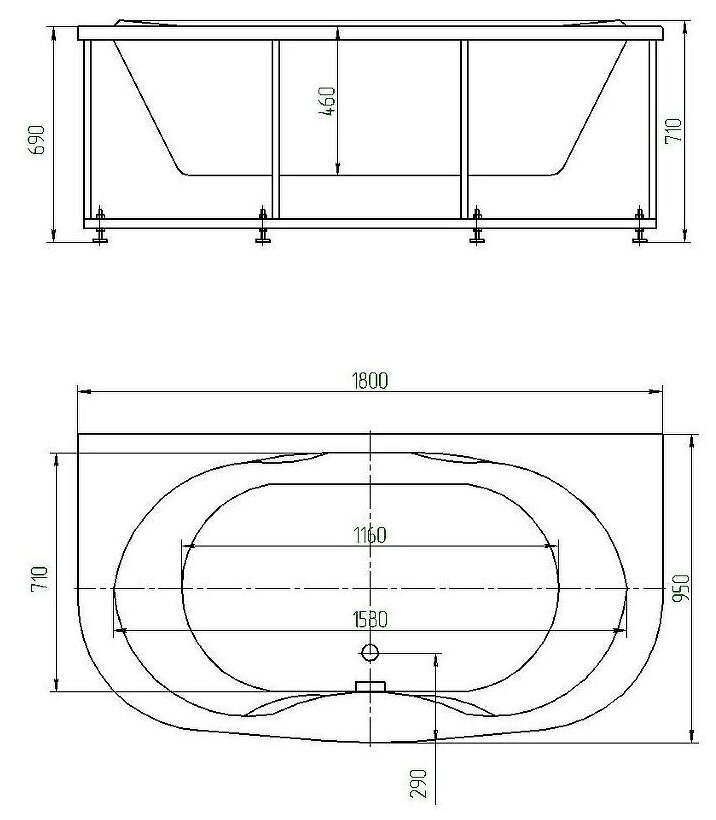 | Дополнительная информация | в комплекте: ванна, вклеенный каркас, фронтальный экран, слив-перелив |