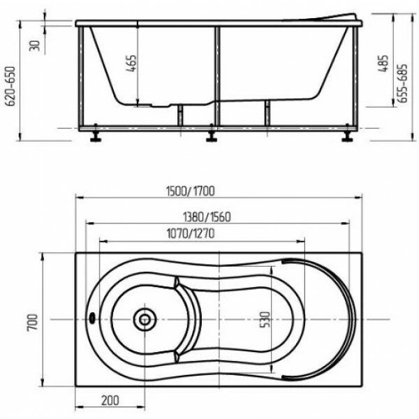 Ванна акриловая АКВАТЕК Афродита 170x70 AFR170-0000045