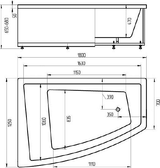 Ванна акриловая АКВАТЕК Оракул 180х125 правая ORK180-0000009