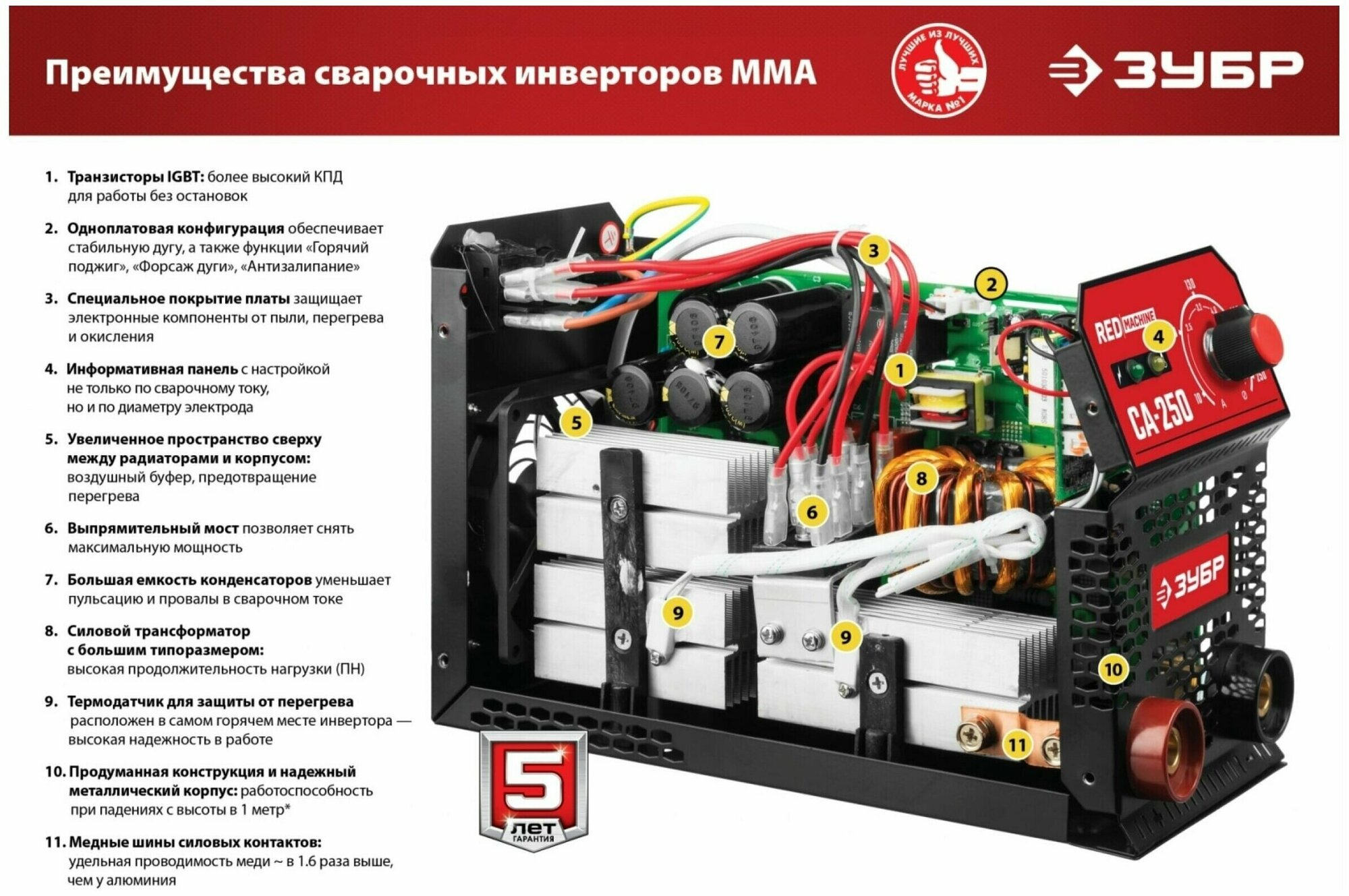 Сварочный аппарат Зубр СА-250К инвертор ММА 8.4кВт