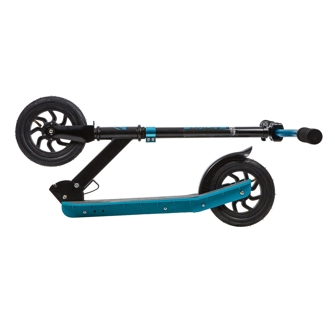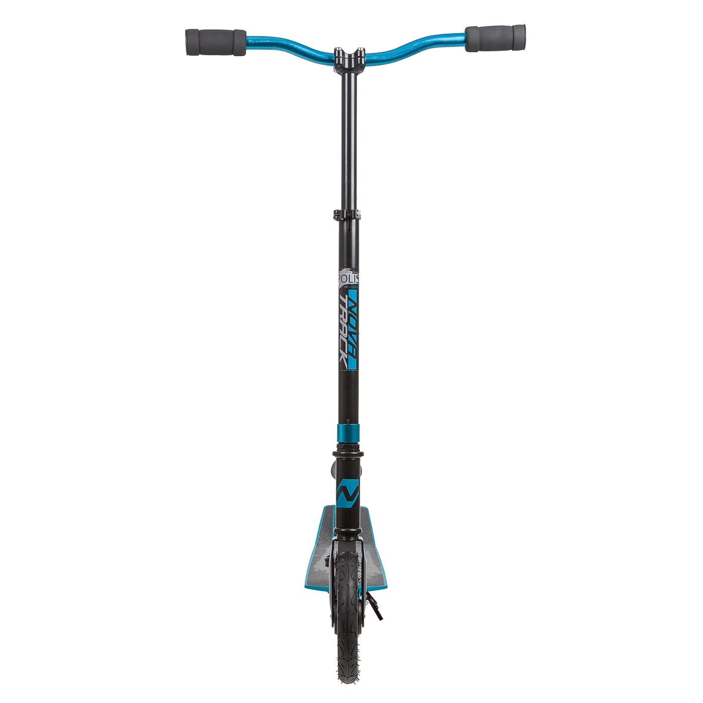 Самокат для детей NOVATRACK POLIS сталь+пластик, складной, эргономичный Y-руль с нескладными рукоятями, ватер стикер, надувные колеса 200*200мм, синий