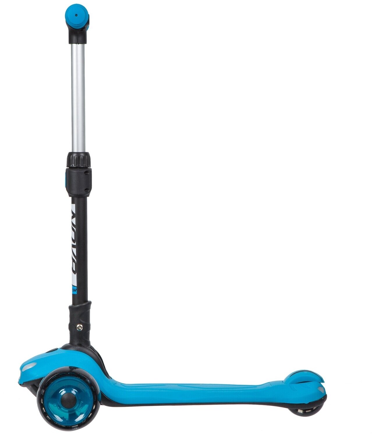 Самокат-кикборд Novatrack RainBow, для детей, складной механизм на руле, регулировка по высоте, свет деки и колес, музыка, дизайн-машинка, синий.