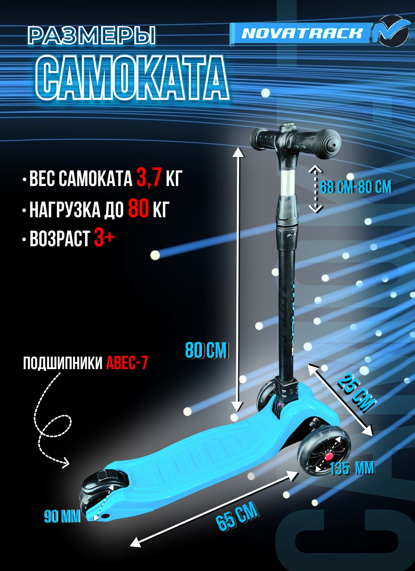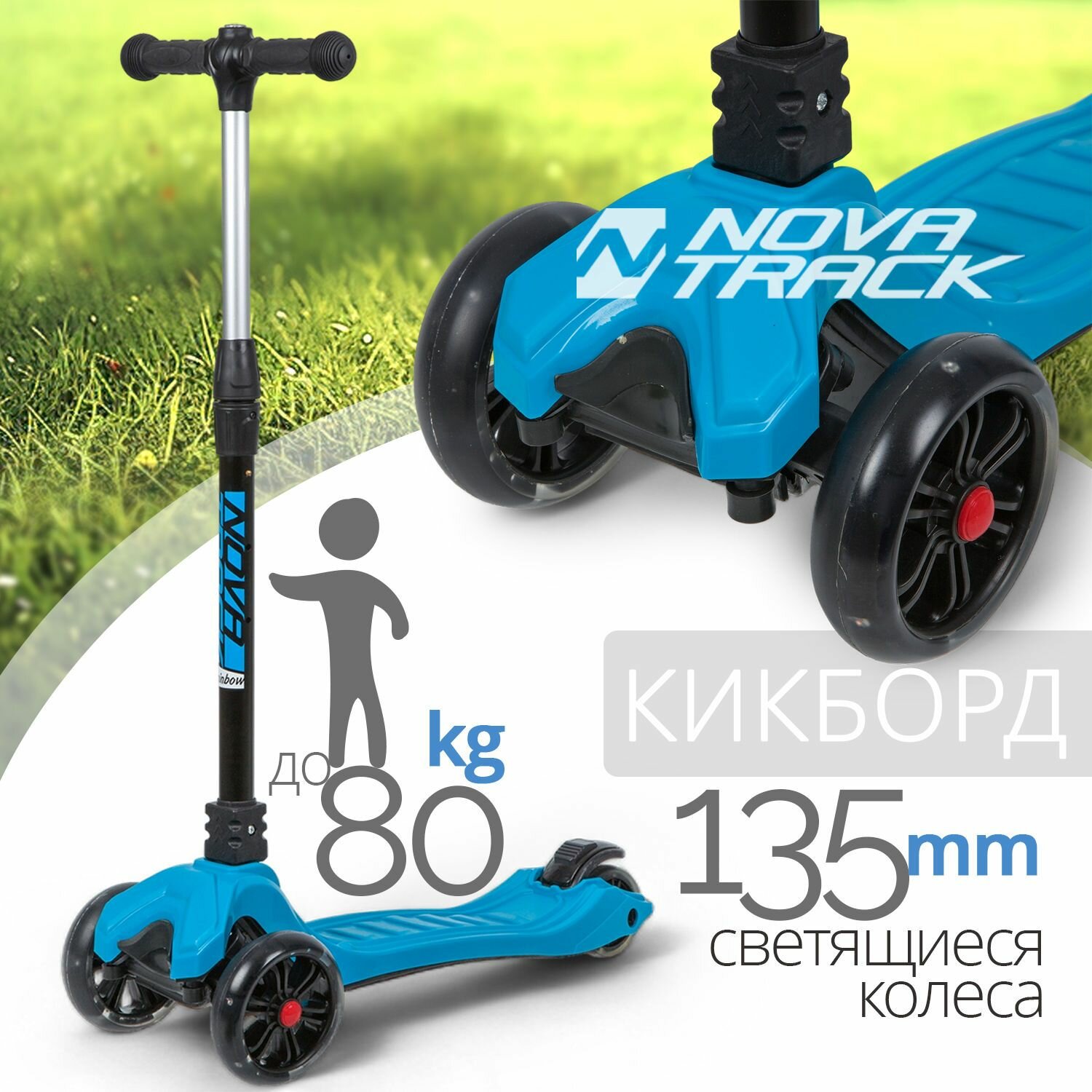 Самокат-кикборд NOVATRACK 135PRO.RAINBOW.BL20 для детей, складной, свет.широкие колеса PU пер.135*35