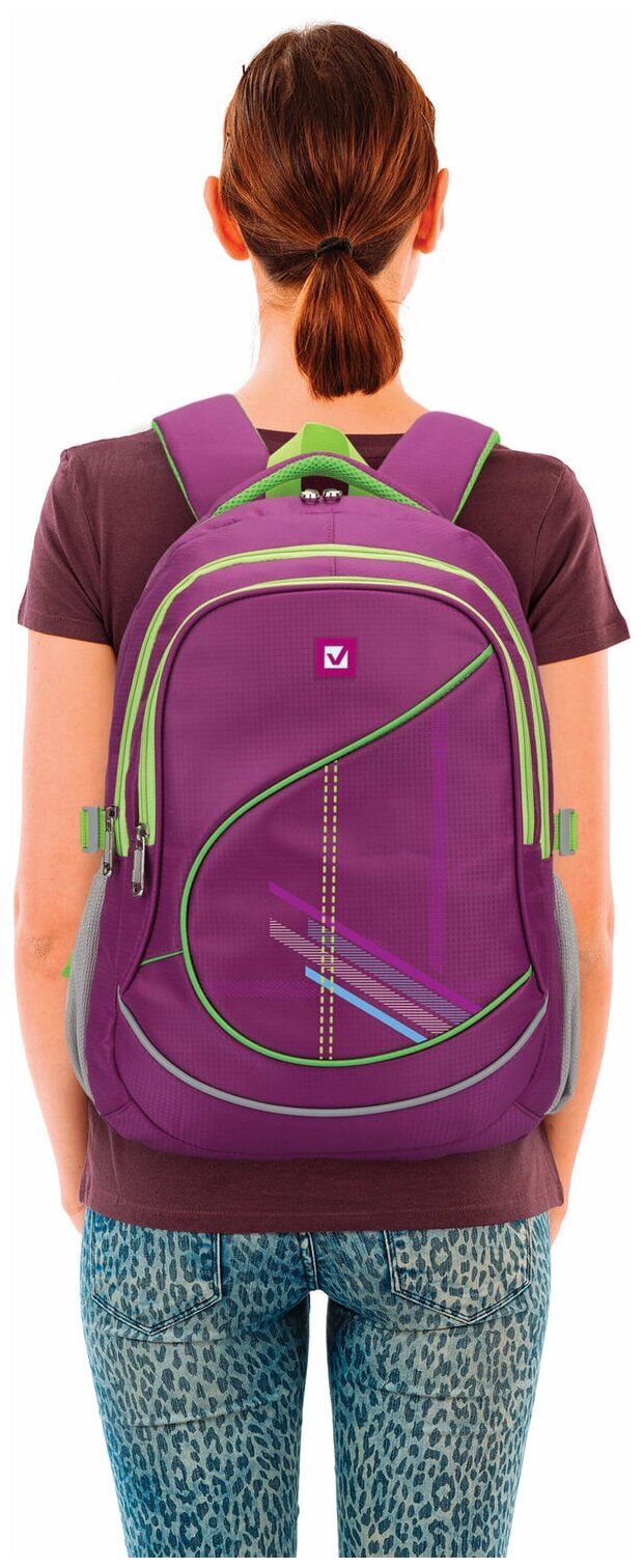 Рюкзак BRAUBERG для учениц средней школы, 30 л, сиреневый/салатовый, «Крокус», 46?34?18 см