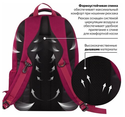 Рюкзак BRAUBERG STATES универсальный, карман-антивор, "Jersey", бордовый, 46х31х14 см