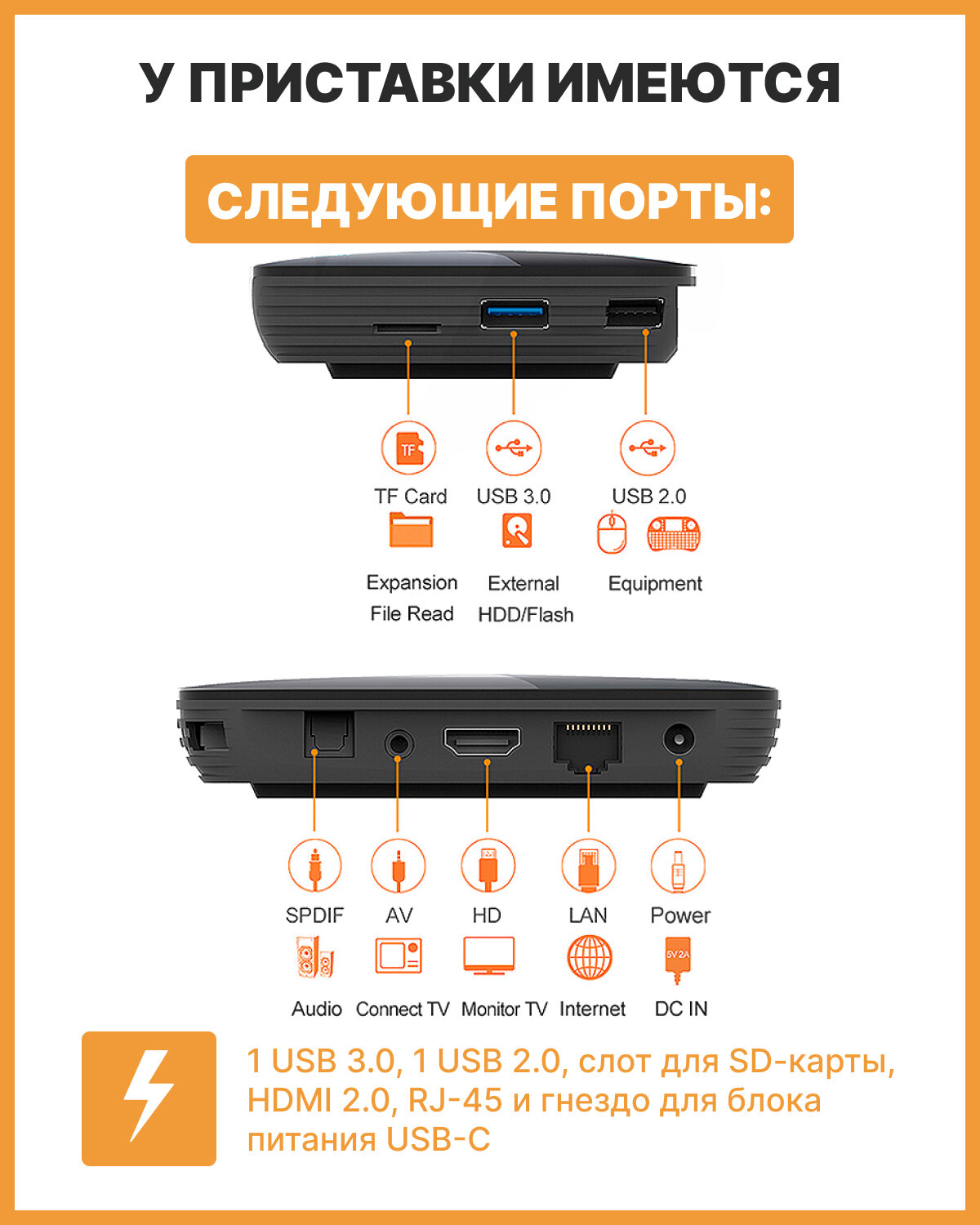 ТВ-приставка Vontar X3 4/64 Gb, черный/оранжевый
