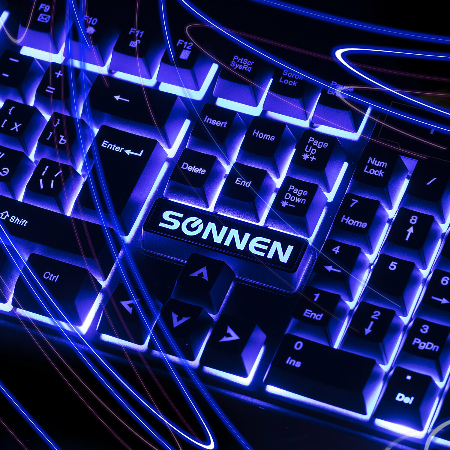 Клавиатура Sonnen KB-7010, USB, LED-подсветка, черный (512653)